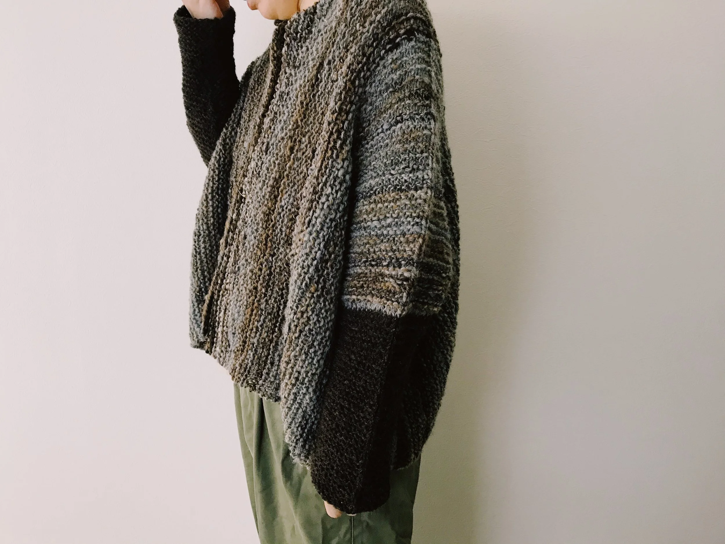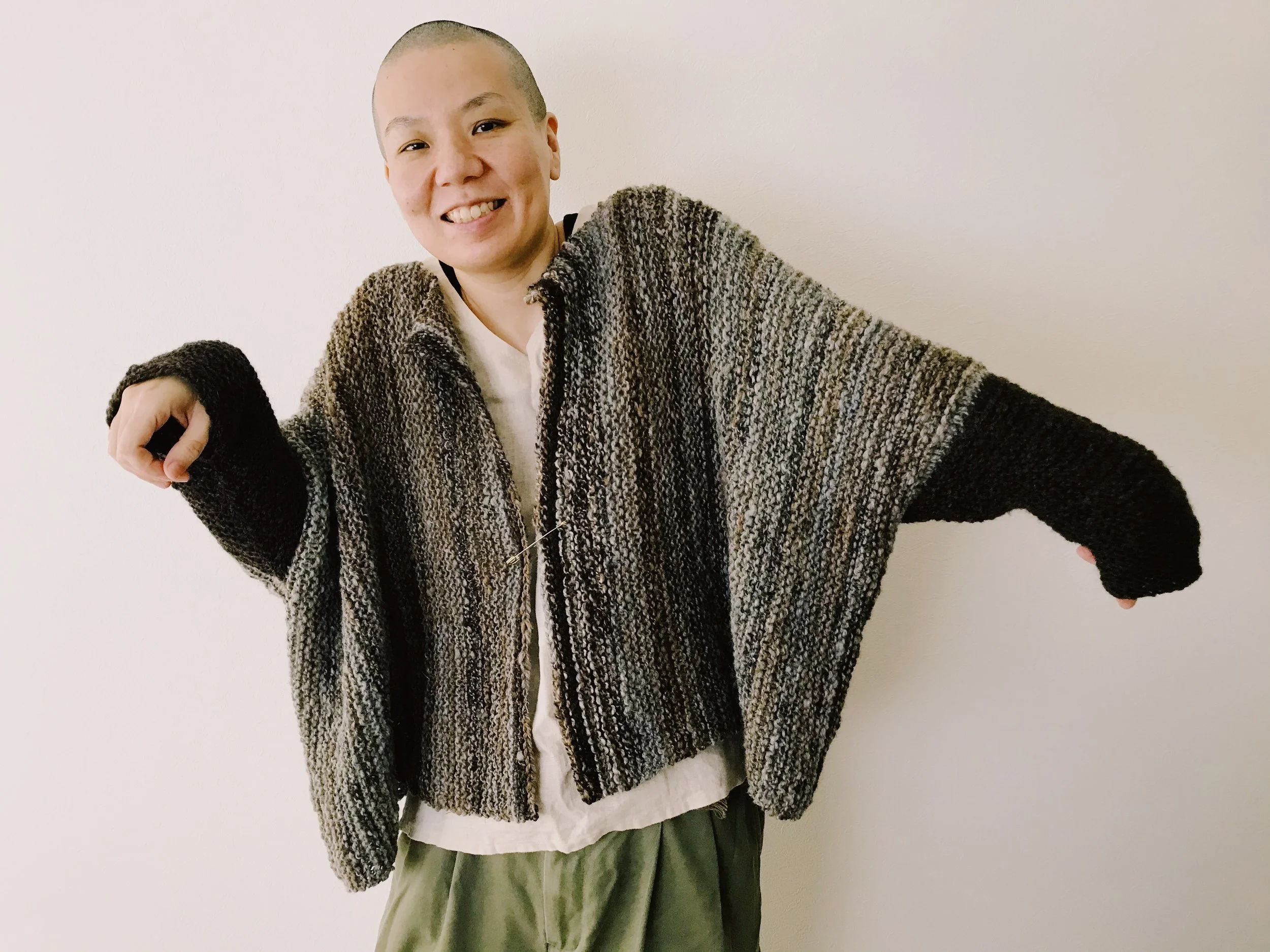 もともとは羽織をイメージして、自分用に編んだ一着をアレンジして生まれたカーディガン。着物のようなゆったりした袖を、日常使いしやすいようにフィット感のある袖に変えたことで、今のかたちになりました。